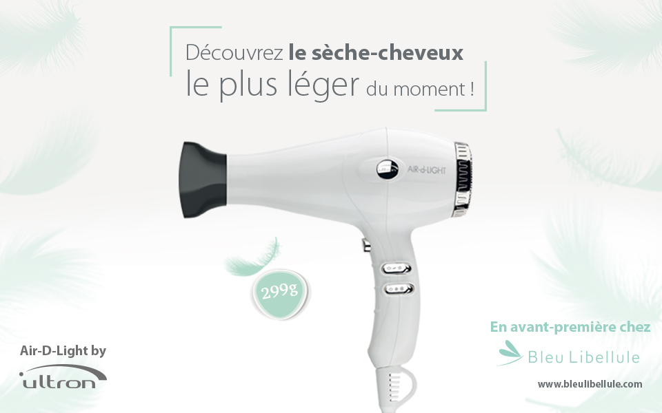 Vendu en avant-première chez Bleu Libellule jusqu’au 31 juillet 2018, le nouveau sèche-cheveux Ultron Air-d-Light va reposer vos poignets !