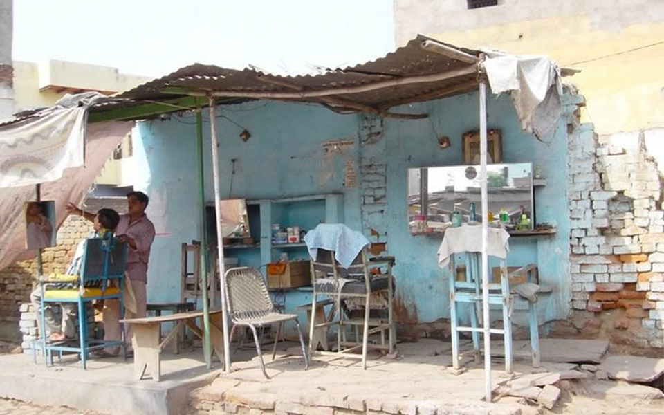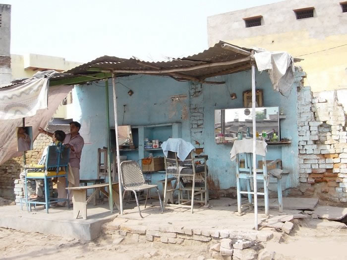 En Inde, certains coiffeurs ne s’embêtent pas avec un local. Pour faire savoir qu’ils sont là, ils préfèrent s’installer directement dans les rues.