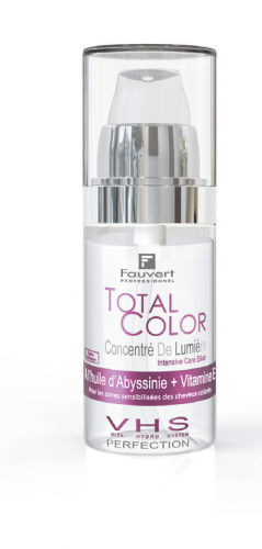 Un soin de finition et de nutrition sans rinçage pour longueurs et pointes qui nourrit et sublime les cheveux colorés : telles sont les ambitions de ce Concentré de Lumière, nouveau produit de la gamme Vita Hydro System Perfection (VHSP) et du Programme Total Color de Fauvert. Une formule sans faille (vitamine E, huile de jojoba et d’Abyssinie, filtre UV) et un parfum fruité pour un éclat incomparable
