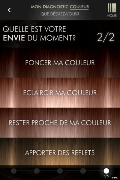 L’application permet de faire un diagnostic couleur, de découvrir de nouvelles nuances et de tester virtuellement le résultat. Depuis son mobile on peut tester à volonté les couleurs et partager ces simulations sur les réseaux sociaux.