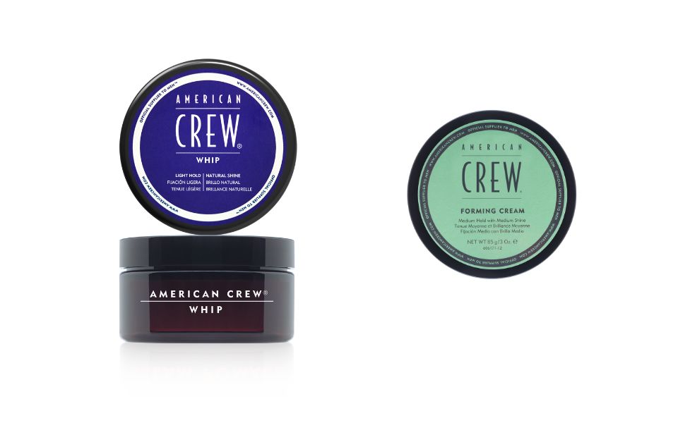 1 – La crème coiffante Whip d’American Crew et le shampooing Forming Prestyling Cleanser qui contient déjà un produit de coiffage. À compléter par la Forming Cream.