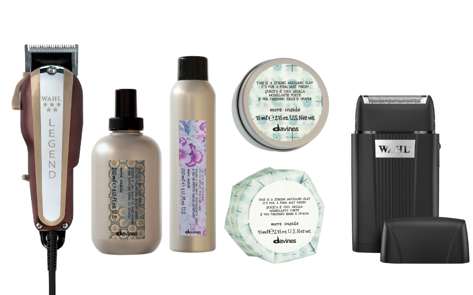 2. Pour un dégradé soft sur les côtés, peigne-ciseaux. Pour un rendu plus fort, une tondeuse de coupe, une de précision et une de finition. Legend, Hi-viz et Closer de Wahl.