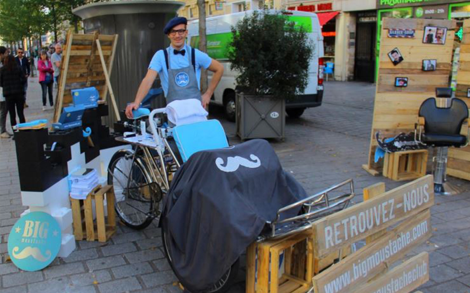 Le concept est né du constat que les hommes souhaitent de plus en plus prendre soin d’eux, mais ne savent pas toujours comment choisir leurs produits ni où trouver les conseils adaptés. Par ailleurs, les salons de barbiers ont des carnets de rendez-vous particulièrement pleins, et les tarifs proposés sont souvent très élevés, surtout pour des hommes qui n’ont pas l’habitude de ce type de soin. Big Moustache a donc réaménagé un pousse-pousse traditionnel vietnamien en transformant son assise en véritable fauteuil de barbier pour reconstituer de véritables barbershops éphémères sur toutes sortes d’événements, festivals, etc. Le projet a été exposé à la Foire de Paris en mai dernier.