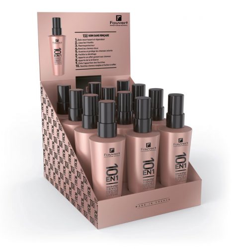 Dix bienfaits essentiels dans un spray. C’est ce que propose Fauvert Professionnel avec 10 en 1, soin qui nourrit, illumine et protège les cheveux en les rendant doux et faciles à coiffer. Huile d’amande douce et protéines de soie pour des cheveux hydratés, forts et sans frisottis. À conseiller à vos clients aux cheveux secs et abîmés.
