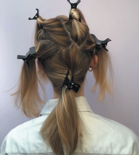 2 – Twister chaque zone sur elle-même, puis remonter vers le dessus en fixant avec des pinces plates positionnées en quinconce pour un rendu ultramode.