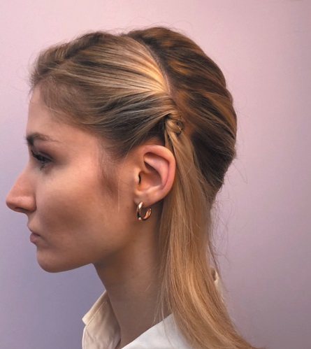2 – Twister la mèche et fixer juste au-dessus de l’oreille.