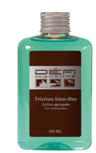 Friction bien-être de Défi Pour Homme est une lotion à l’action apaisante, à l’extrait de pin maritime, qui apaise et adoucit le cuir chevelu. Elle pénètre rapidement et apporte un soulagement et une douceur immédiate, particulièrement sur les zones sensibles. Conseillez Friction bien-être à vos clients en utilisation ponctuelle ou en cure de 6 semaines (3 applications au moins par semaine). Ne se rince pas.