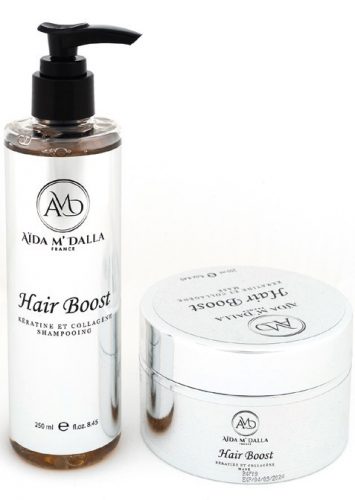 AMD France présente le duo shampooing et masque HairBoost, véritable botox capillaire à la kératine, à l’arginine et au collagène, qui reconstruit la fibre capillaire. Sa formule professionnelle concentrée, naturelle, vegan et élaborée en laboratoire certifié, vient en aide aux cheveux lissés et ou endommagés et abîmés. L’apport de chaleur au séchage est nécessaire pour un résultat optimal.