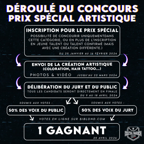 - Prix artistique : une nouveauté cette année, permettant des créations artistiques avec colorations, hair tattoo…