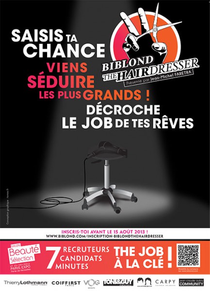 Les graines de star ont leurs émissions de télé-crochet, chez Biblond, nous avons décidé de donner aussi leur chance aux talents de la coiffure en organisant Biblond The Hairdresser le dimanche 15 septembre lors du salon Beauté Sélection Paris au Parc Expo Porte de Versailles, pour vous donner l’opportunité rêvée d’être auprès des plus grands. Un prime time revisité à l’échelle de la coiffure rien que pour vous !