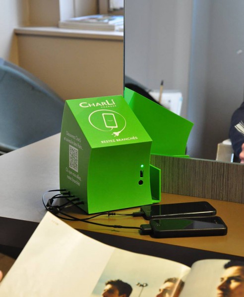 CharLi est une petite borne de rechargement de téléphone portables pour les salons de coiffure. Un atout supplémentaire pour bichonner votre clientèle.