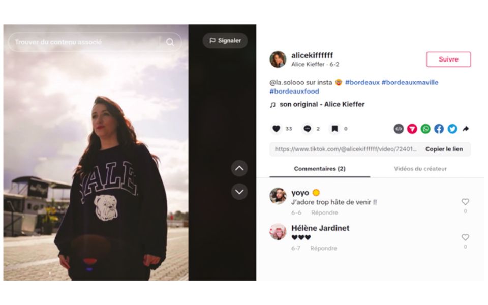 Vu sur TikTok @alicekiffffff : La Bordelaise Alice Kieffer est non seulement artiste coiffeuse de talent et formatrice mais elle est aussi organisatrice d’events @lasolooo sur Instagram. Elle partage ce qu’elle aime lors de ces événements comme les stand-up, Drag shows, battle de danse hip hop, choix de DJ « caliente » en ne faisant intervenir que la gent féminine pour rétablir l’équilibre artistique.