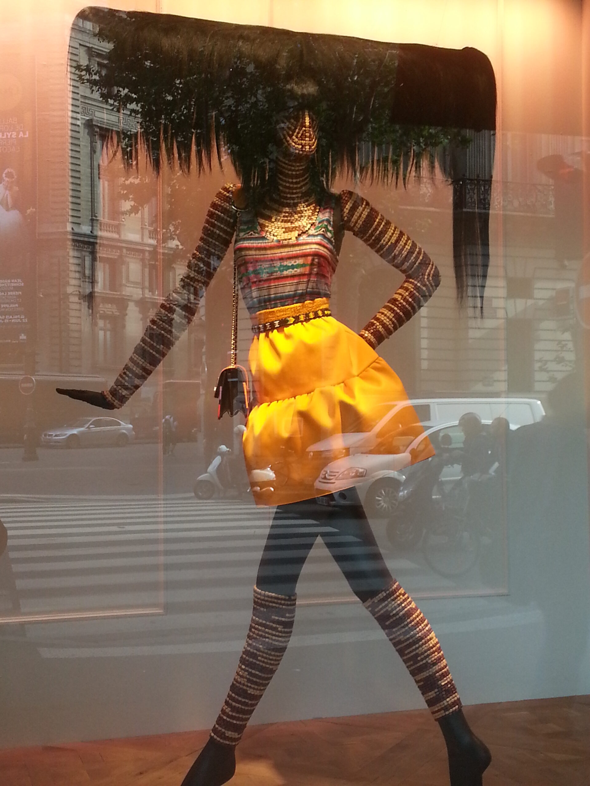 « Africa Remix » Le thème de ces vitrines se veut ethnique chic avec des imprimés forts et contrastés dans des tons ocre, brun et pourpre réveillés par des couleurs plus flashy.