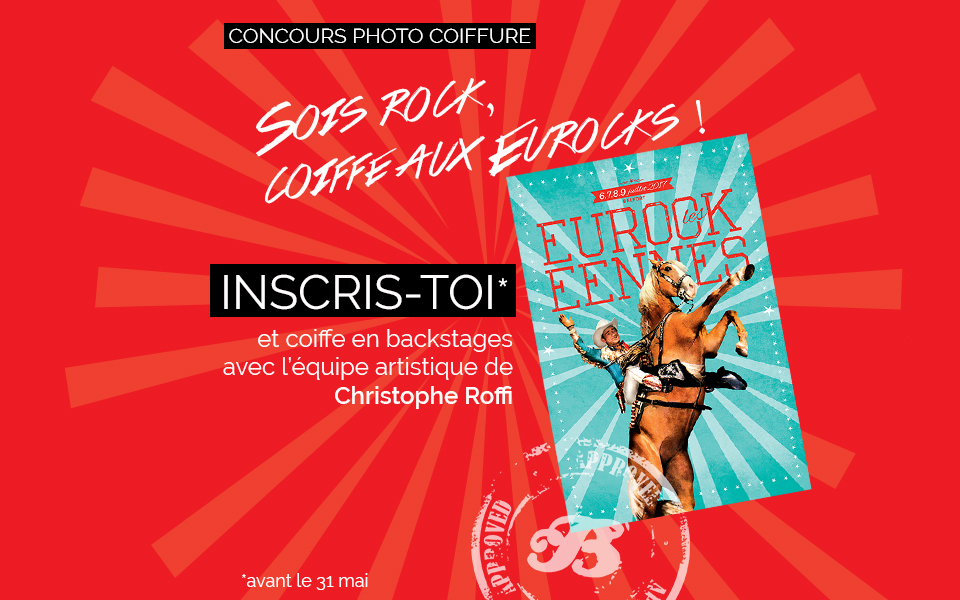 Sois Rock, coiffe aux Eurocks revient cette année en partenariat avec Les Eurockéennes et le salon Christophe Roffi (Belfort). Une fois de plus, on vous offre la possibilité de coiffer les artistes programmés durant le festival de musique, du 6 au 9 juillet.