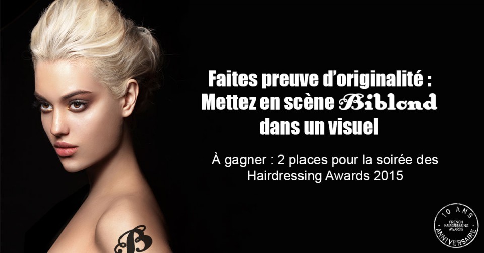 Le concours Photo Hairdressing Awards & Biblond vous donne la chance de prendre part à l’événement (1×2 places sont à gagner). Pour participer, rien de plus simple : prenez une photo en intégrant un indice Biblond. Les critères de sélection pour le jury seront créativité, originalité et cohérence artistique.