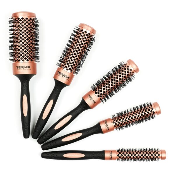 Un lot de 5 brosses Gold Rose Termix d’une valeur de 89€. Les brosses EVOLUTION Gold Rose offrent un résultat inégalé à ce jour et une protection totale du cheveu. Manche ergonomique antidérapant, tube anti-adhésif avec perforation rhomboïdales pour un séchage plus rapide grâce à une circulation d’air plus importante.