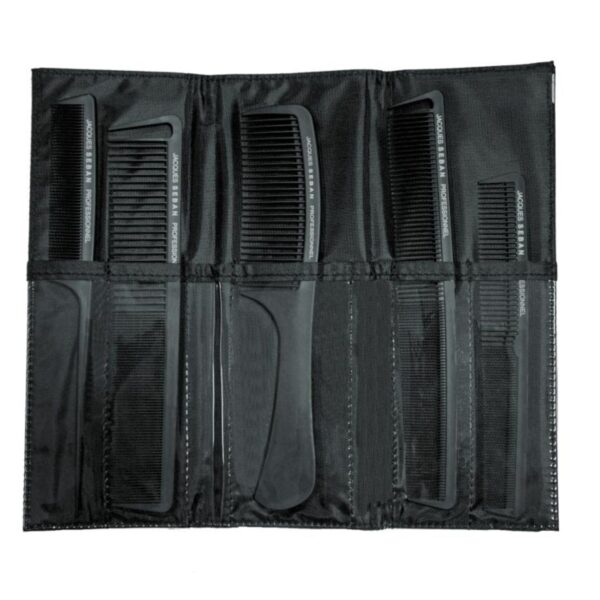 Trousse 5 peignes de coiffure carbone d’une valeur de 23€. La trousse de peignes professionnels JACQUES SEBAN est l’allié de tous les coiffeurs. Indispensable et pratique, cette trousse regroupe 5 peignes Carbone.