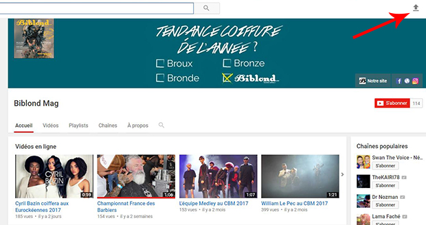 - Ça y est ! Vous avez une chaîne YouTube ! Vous n’avez plus qu’à importer votre vidéo en cliquant sur le symbole en haut à droite de votre écran.