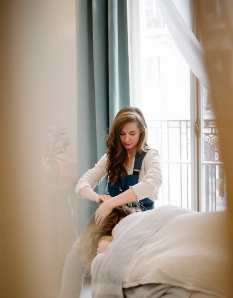 C’est une approche de soin globale et sensorielle, centrée sur le cuir chevelu. Elle s’articule autour de soins profonds et d’un travail de gestuelle spécifique, avec pour élément central le massage crânien. Au coeur de cette méthode se trouve mon massage signature, le Holistic Hair Grow®. D’une durée d’une heure, il s’agit d’un soin profond aux multiples bienfaits : il stimule la microcirculation, nourrit les cheveux de l’intérieur, détend la peau du cuir chevelu et offre une détente immédiate, autant sur le plan physique qu’émotionnel. Il intègre aussi des manoeuvres ciblées sur les trapèzes et le haut du dos, dont les tensions ont des répercussions sur le cuir chevelu. C’est une expérience holistique, qui fait le lien entre santé des cheveux, bien-être intérieur et beauté naturelle.