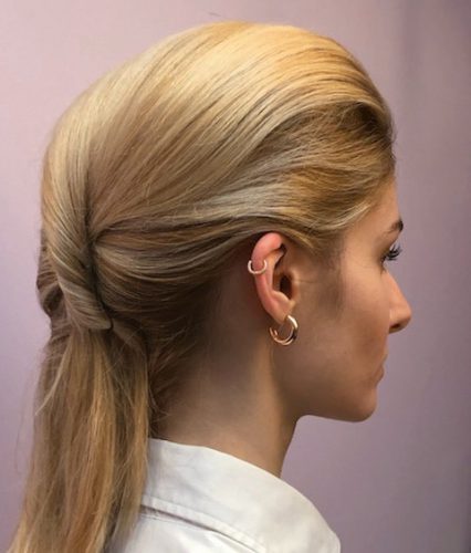4 – Lisser le dessus de tête et twister façon chignon banane. Fixer à côté du premier chignon.