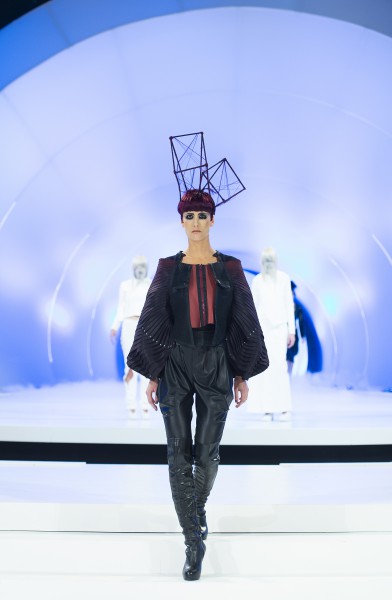Echo par Alexis Ferrer et Marcos Leonardo, inspirée de tons noirs et austères ponctués d’élégantes nuances de couleurs mélancoliques, pour créer des coiffures à la fois expérimentales et précises