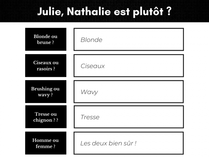 Julie : Nathalie est la gérante du salon !