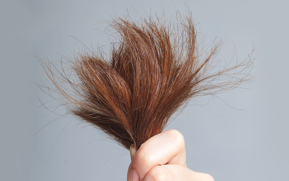 En général accompagnée d’une chevelure longue, terne, cassante, la fourche est un minuscule point blanc à la pointe du cheveu : c’est le cuticule qui est endommagé.