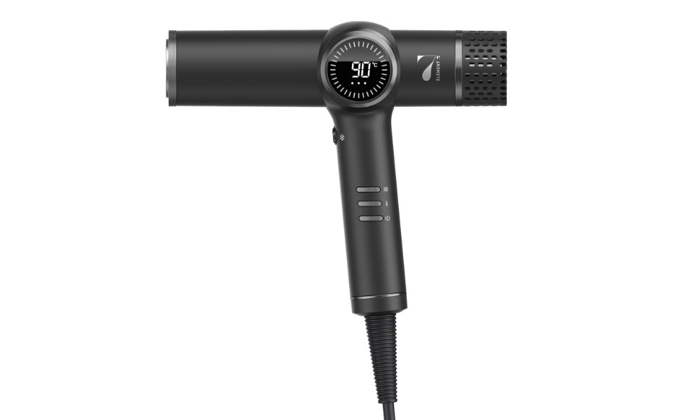 Le nouveau sèche-cheveux Pulse lancé par 7ème Élément allie à la fois performance, innovation et élégance. Son design ergonomique permet une bonne position des doigts de la main tout en étant ultraléger. Il surprend aussi par sa puissance, le contrôle précis du flux d’air avec 4 niveaux de réglage. Il affiche la température désirée en degrés grâce à son écran LCD.