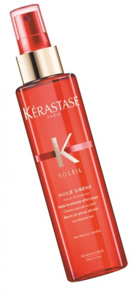 Kérastase accompagne votre été et vous propose de faire découvrir à vos clientes l’alliance unique d’une huile de protection et d’une brume croissante. L’huile Sirène définit et texturise les ondulations naturelles, offre aux cheveux une protection solaire tout en boostant leur éclat. Enrichie en vitamine E issue de l’huile de babassu et en actifs hydratant, la formule pénètre rapidement et offre une douceur instantanée et un aspect soyeux, sans effet cartonné. Les cheeux sont parfuméS de notes de jasmin et de tubéreuse solaire.