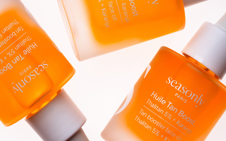 Préparez, activez et prolongez le bronzage de vos clientes avec le sérum-enhuile biphasé Tan Boost de Seasonly. Composé de Thalitan et de Karanja, il stimule la synthèse de mélanine et prévient le vieillissement cutané.