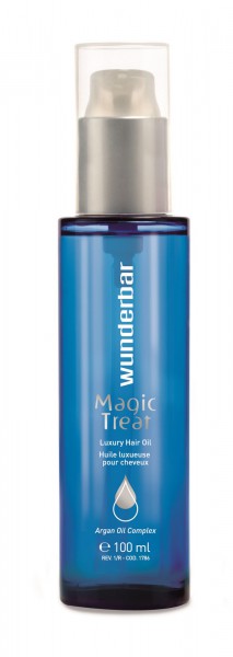 Wunderbar Magic Treat est un soin polyvalent pour les cheveux. Cette huile nourrit, protège et démêle les cheveux, mais augmente aussi la brillance. L’huile Magic Treat stimule l’éclat de la couleur et rend les cheveux doux tout en accélèrent de 40% le temps de séchage. Sa formule est basée sur un mélange d’huile d’argan et d’huile de crambe d’Abyssinie, qui apporte aux cheveux force, brillance et protection en rétablissant les protéines, les acides gras, les omégas 3, les vitamines et les antioxydants perdus.
