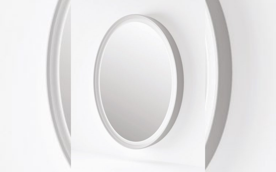 Impressionnant par sa taille XXL ! Miroir Visionhair mural mesure 1,80 m de haut et 1,30 m de largeur. Structure en bois peint en blanc. Illumination LED disponible. Pietranera.