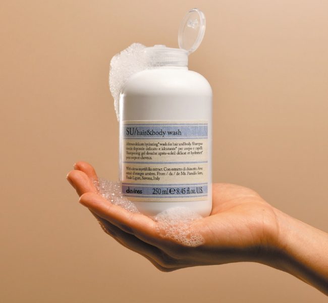 SU de Davines hydrate la peau et les cheveux, les protège du soleil, et préserve aussi notre planète. Ses formules, sans sulfate ni parabène, contiennent un ingrédient actif en soutien de la biodiversité. Pour affronter l’été en douceur, Davines présente SU/Hair & Body Wash, son Shampooing hydratant et protecteur. Nettoie délicatement les cheveux et le corps après l’exposition au soleil grâce à un mélange de tensioactifs délicats. À base de Chinotto de Savone, issu du label Slow Food qui soutient la biodiversité. Pourcentages élevés d’ingrédients d’origine naturelle et rapidement biodégradables.