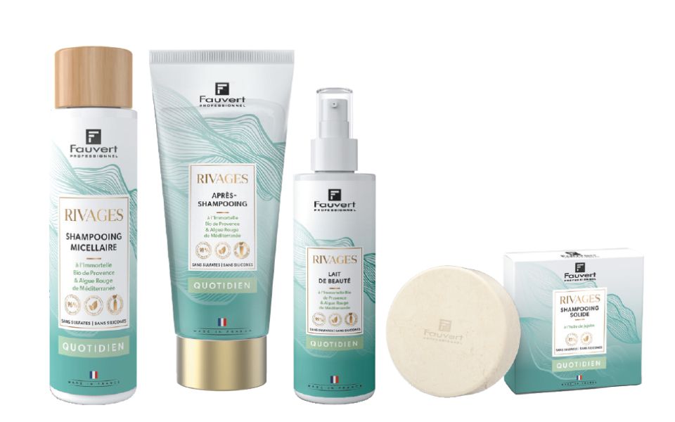 Fauvert Professionnel présente Rivages, une gamme française, proposée à la revente. Composée à 98 % d’ingrédients d’origine naturelle, la ligne est développée autour d’un ingrédient phare, l’algue rouge de méditerranée, et s’inspire de rituels de soins ancestraux des rivages méditerranéens. Gamme naturelle, écoresponsable, végan, sans sulfates, sans silicones, sans parabènes. Trois programmes qui sont de véritables rituels de beauté pour des cheveux qui retrouvent force, santé et brillance.