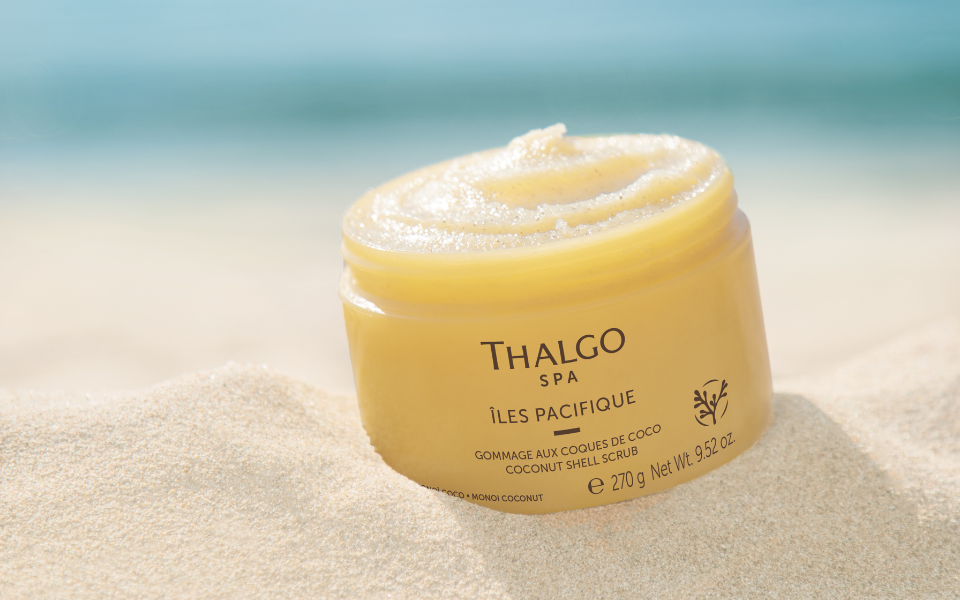 Escale à Bora-Bora avec le gommage vegan proposé par Thalgo Spa. Inspirée des rituels traditionnels, cette pâte scrub associe subtilement deux exfoliants naturels, le sel marin et les coques de coco, pour une exfoliation douce et respectueuse de la peau. Enrichie en algue des lagons, sa texture « beurre fondant » hydrate et reminéralise la peau, tout en éliminant les impuretés et les cellules mortes.
