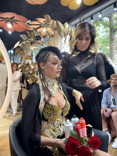 Un show capsule tout aussi bluffant d’Élodie Comtesse et d’Amine Badaoui qui avaient aussi choisi le mood des divinités avec Hadès et Athéna. « J’ai voulu faire un petit clin d’œil à Athéna, la déesse de l’artisanat », précise la pétillante Élodie Comtesse. Les invités ont été conquis par le travail minutieux réalisé par nos ambassadeurs. Des applaudissements aussi pour les démonstrations de tailles de barbe et soin de Christophe, maître barbier du salon Mademoiselle Moustache et les morceaux choisis de la chanteuse Nade.