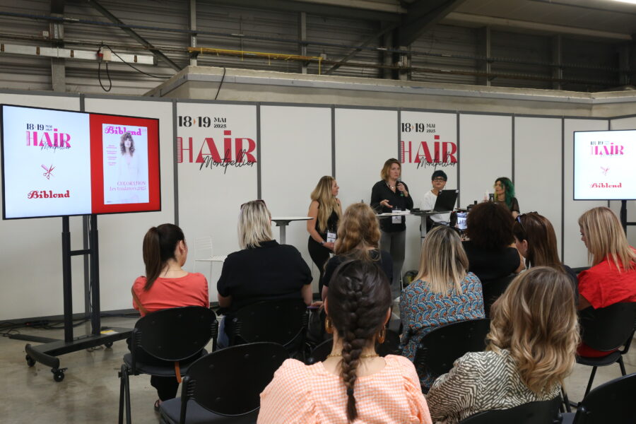 Pour nous accompagner dans cet exercice, trois femmes d’exception étaient venues témoigner de leurs expériences et offrir leurs astuces et recommandations pour les visiteurs présents dans la salle : Anaïs Royer, formatrice et cheffe barbière et chargée de communication marketing au sein des entreprises La Loge à Seynod, dans la région d’Annecy ; Léna Lepetit, coloriste experte ; et Alexia Fedidah, maître artisan coiffeuse, fondatrice du salon Hairstyle Art à Montpellier, récompensée plus de cent fois en concours de coiffure. Coupes femmes, hommes, balayages, colorations créatives et coiffages, toutes les tendances ont été décryptées pour mieux répondre aux envies des femmes en salon.