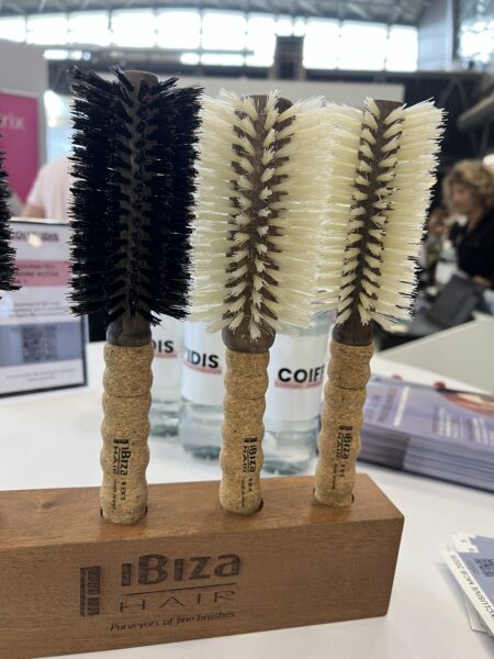 Ingénieuse, la nouvelle brosse espagnole Ibiza Hair, présentée sur l’espace Coiff’idis. Elle est dotée d’un manche en liège et des poils de sanglier blonds, hélicoïdaux, parfaits pour donner plus de brillance aux cheveux colorés et fins.
