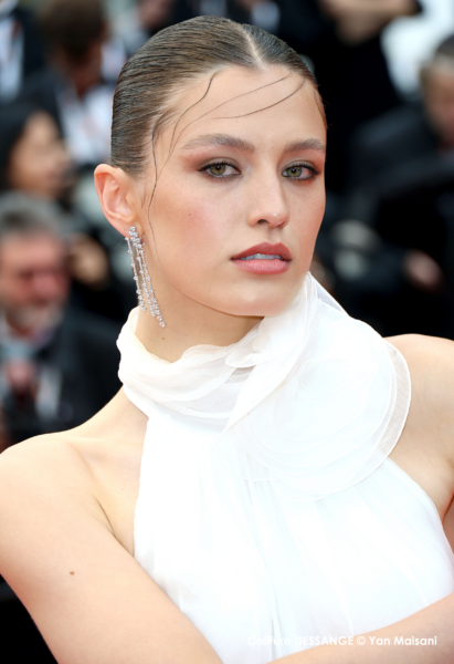 Baby hair affirmés sur le front d’Emma Todt, sublimée par l’équipe de Dessange.