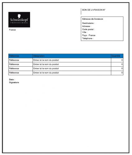 Document adressé à un fournisseur par le responsable du salon de coiffure pour matérialiser une commande. Il constitue un engagement juridique et financier. Il contient la date, le nom et l’adresse du fournisseur, le numéro de la commande, les articles désirés (quantité, prix HT), le prix total TTC, le mode de livraison, le mode de paiement et la signature de l’acheteur.