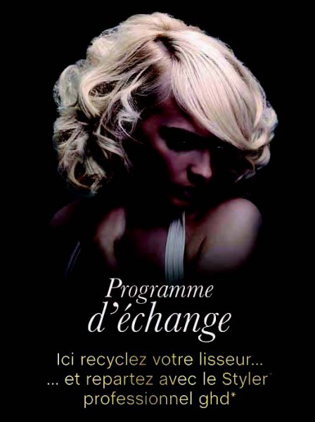 Pour la deuxième année consécutive, la marque de styler ghd lance, jusqu’au 6 mai, son Programme d’échange. Le principe ? Les clientes apportent dans leur salon leur styler usagé (quelle que soit la marque) et bénéficient d’une remise immédiate de 30 euros sur un produit ghd de leur choix.