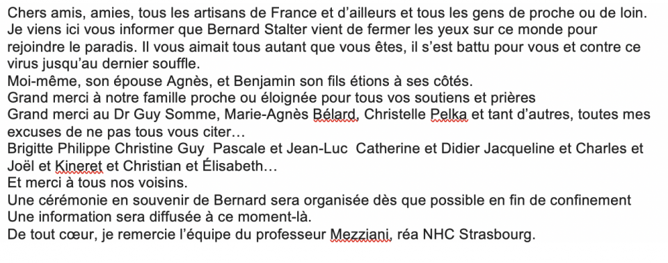De très nombreux hommages ont été rendus à Bernard Stalter. Tous unis dans la tristesse à la suite de l’annonce de son décès dû au Covid-19.