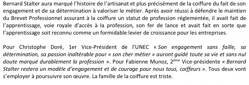 Tous, coiffeuses, coiffeurs, professionnels de la coiffure, magazines de coiffure, Biblond, nous joignons à tous ces témoignages pour rendre hommage à Bernard Stalter.