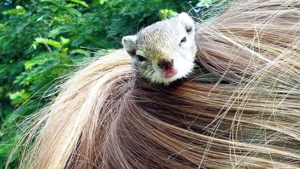 Le rongeur s’est alors empressé dans faire son nid dans la chevelure de l’adolescente, une intention loin de déranger la jeune fille puisque celle-ci s’est tout à fait accommodée de la présence de l’écureuil et se sert du nouveau pensionnaire de ses cheveux afin de les maintenir attachés.