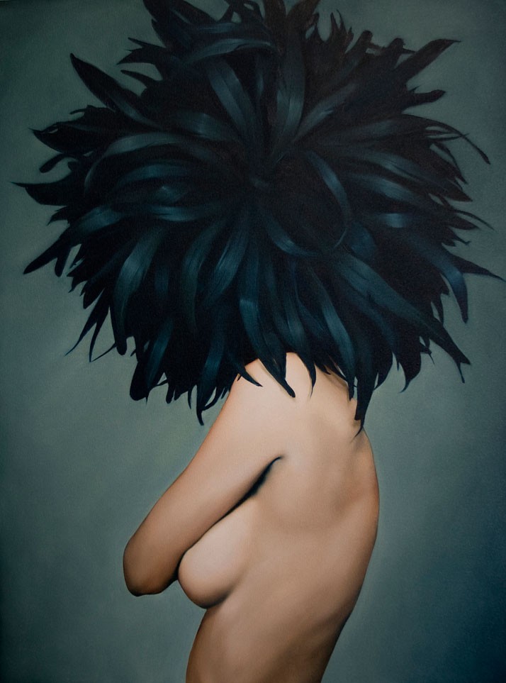 Des peintures où les cheveux se complètent parfaitement de délicats motifs de plumes. Le modèle est sublimé. Femme ? Oiseau ? Ou peut être les deux… Des créations à la fois irréelles et pourtant réalisées avec une précision déconcertante.