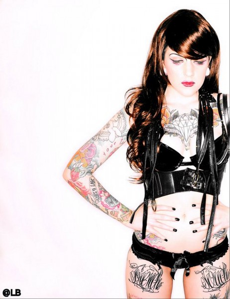 Plus personne n’en doute, le tatouage est un art, au même titre que la coiffure… On assiste ici à la rencontre entre les deux disciplines qui peuvent se montrer complémentaires. En atteste cette coiffure très travaillée aux allures rock’n’roll, elle est comme un gage de crédibilité.