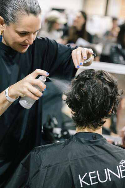 Holli Smith, célèbre coiffeuse américaine, et Keune Haircosmetics collaborent pour créer des looks sleek, contrastant avec les volumes extrêmes des pièces.