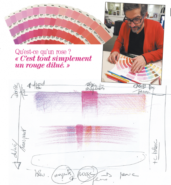 Et, selon la couleur associée, il sera plus ou moins amplifié : « Avec l’orange, vous obtenez un joli rose pêche. Il sera parfait si vous voulez un rose tout doux. Au contraire avec le rouge, vous obtenez un joli rose fuchsia. Le violet et le bleu lui apportent une note froide proche du rose mauve. Seul le vert affadit le rose. Évitez donc d’appliquer du rose par-dessus. »