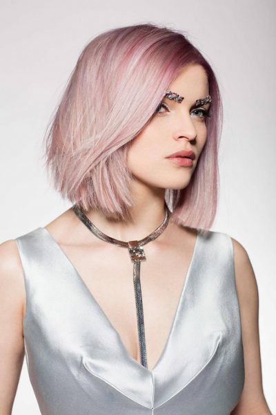 La femme Faretra Paris de cette saison 2016-2017 ne manque ni de caractère ni de sensualité. La collection « Amour » imaginée par Jean-Michel Faretra rend hommage à l’amour dans toute sa splendeur. La coiffure à adopter cet hiver ? Le carré mi-long, que l’on peut coiffer selon ses envies. Notre coiffeur ambassadeur Wella Professionals a imaginé une série de looks versatiles. On aime le carré lisse avec pointes rebiquées, texturisé, avec ou sans frange… Côté couleurs, on mise sur une base blonde en racines, des mèches blondes plus foncées sur les longueurs et une pointe de rose irisé, couleur symbolique de l’amour.