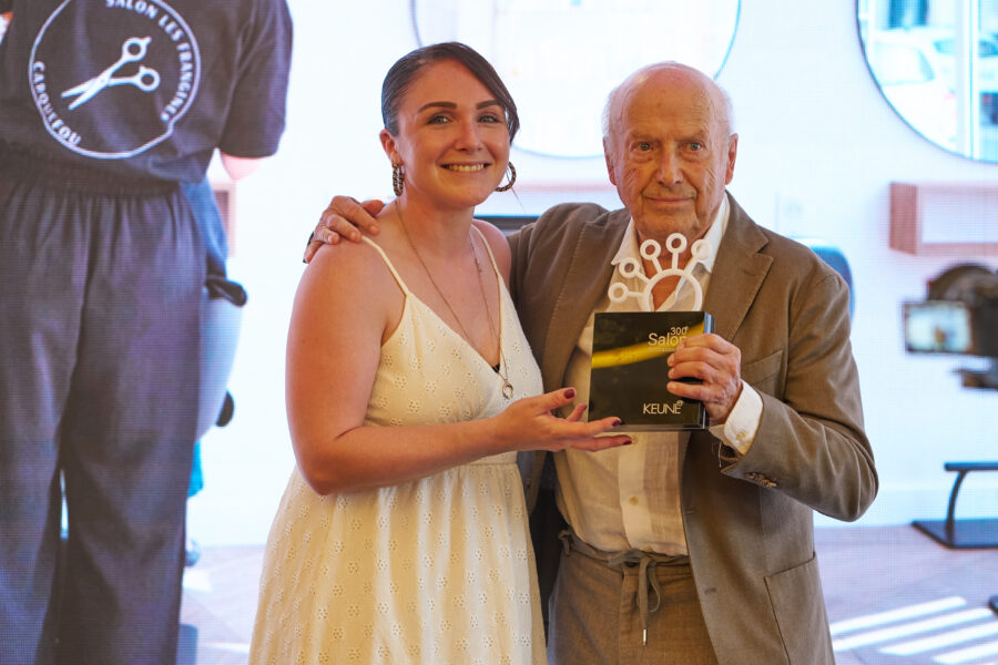 L’intelligence artificielle, les solutions digitales pour les salons ou encore la Keune Online Academy ont rythmé cette journée, illustrant les engagements concrets de la marque pour accompagner les coiffeurs dans les enjeux actuels et futurs de leur métier. Temps fort de l’événement : la remise d’un trophée au 300ᵉ Salon Ambassadeur, Les Frangines (44), sous les regards émus de MM Keune et Eelco Keune. Une belle reconnaissance pour ce partenariat de confiance qui ne cesse de se renforcer.